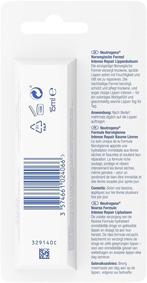 De Neutrogena Intense Repair CICA Lippenbalsem biedt intensieve verzorging voor droge, gebarsten lippen en biedt dagelijks verlichting en bescherming. De glycerine in de formule trekt watermoleculen aan, wat het vochtgehalte van de lippen verhoogt, terwijl panthenol helpt bij het herstel van droge en gebarsten lippen. De Neutrogena Intense Repair Lippenbalsem herstelt, vernieuwt en kalmeert de lippen, terwijl de rijke formule ze verwent. Ervaar onmiddellijk comfort op uw lippen met deze hydraterende en verzorgende lippenbalsem. Ontwikkeld in samenwerking met dermatologen