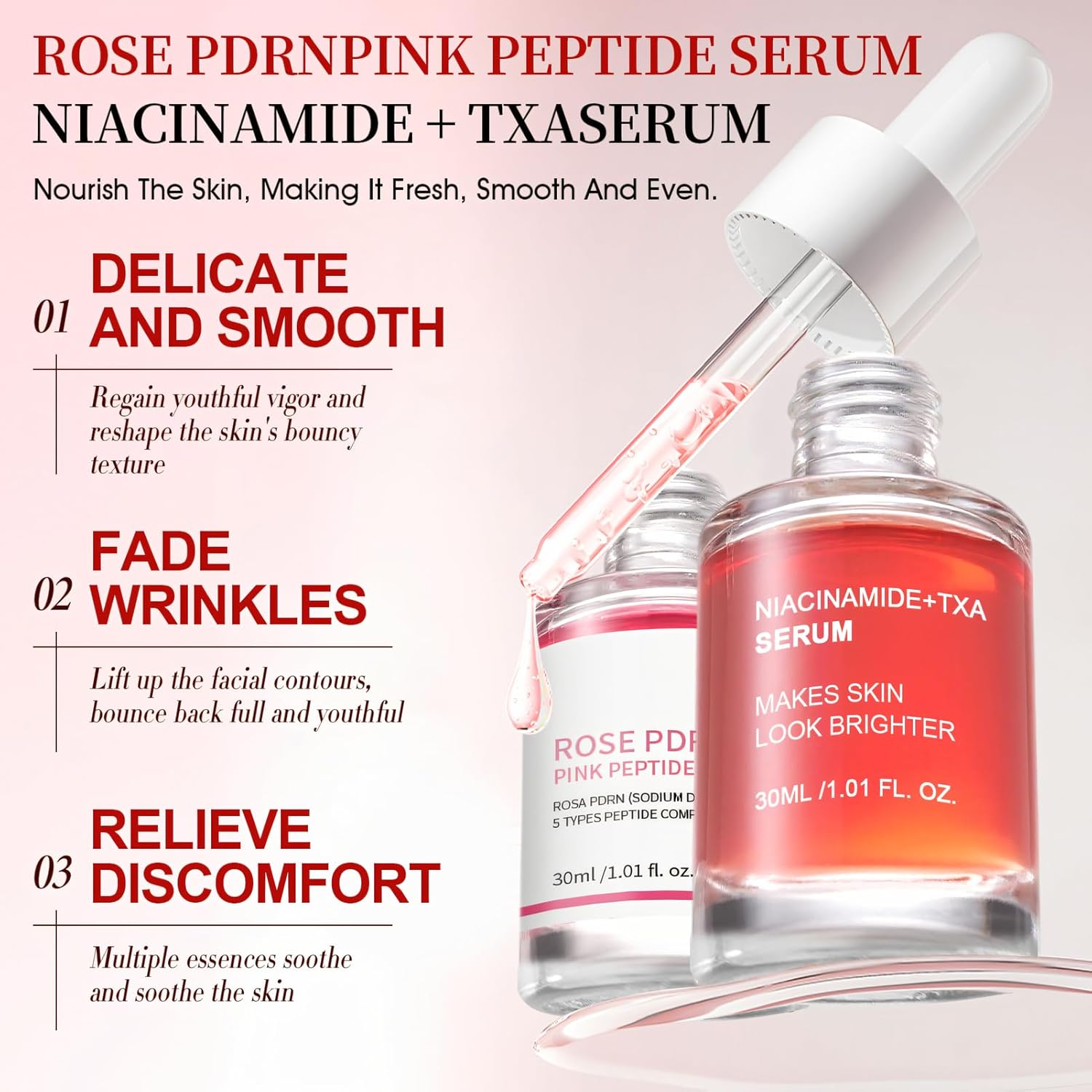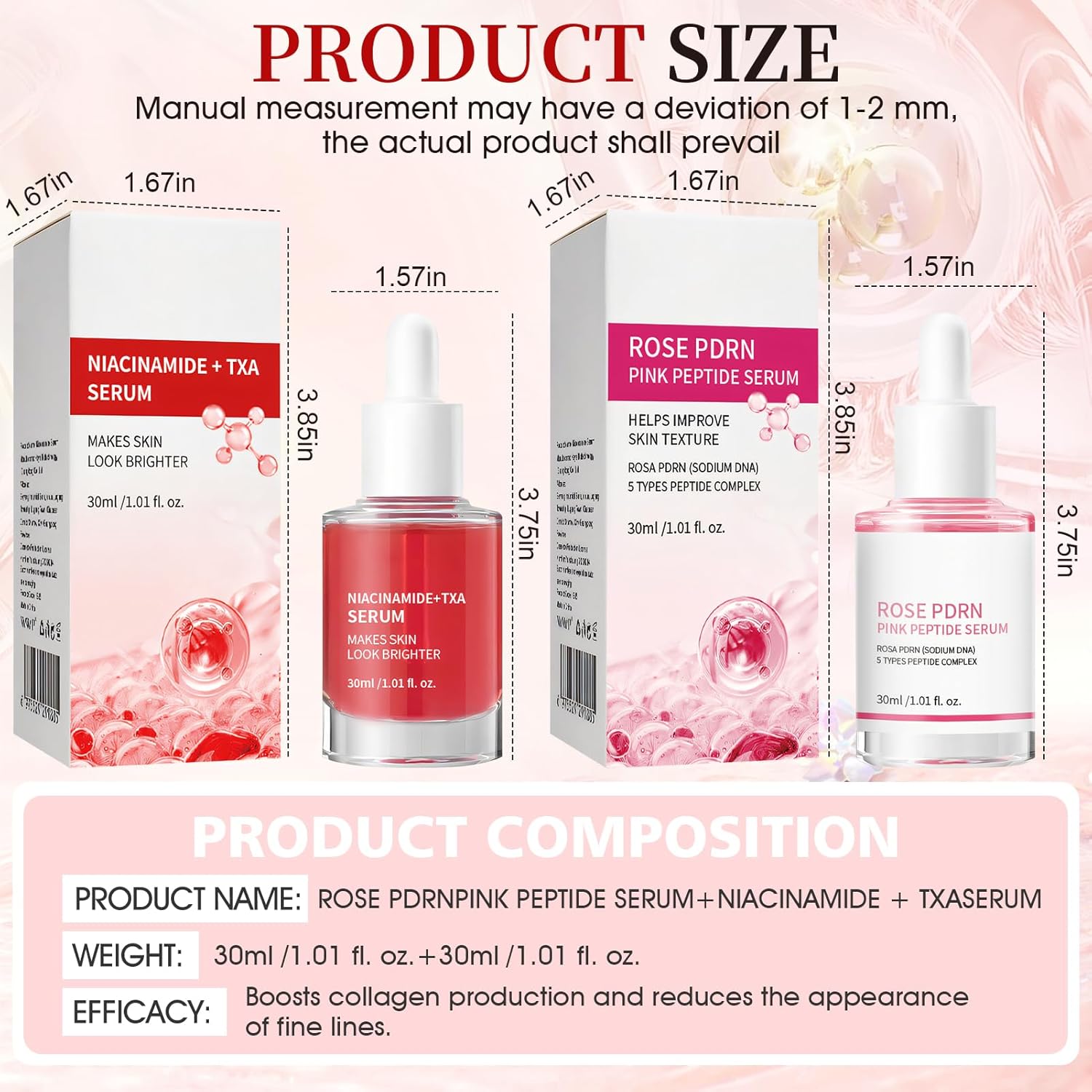 Niacinamide serum + roze peptide serum, hyaluronzuur serum voor dames, niacinamide 10% + Txa 4%, bevordert de collageenproductie, vermindert fijne lijntjes en rimpels, 2 x 30 ml