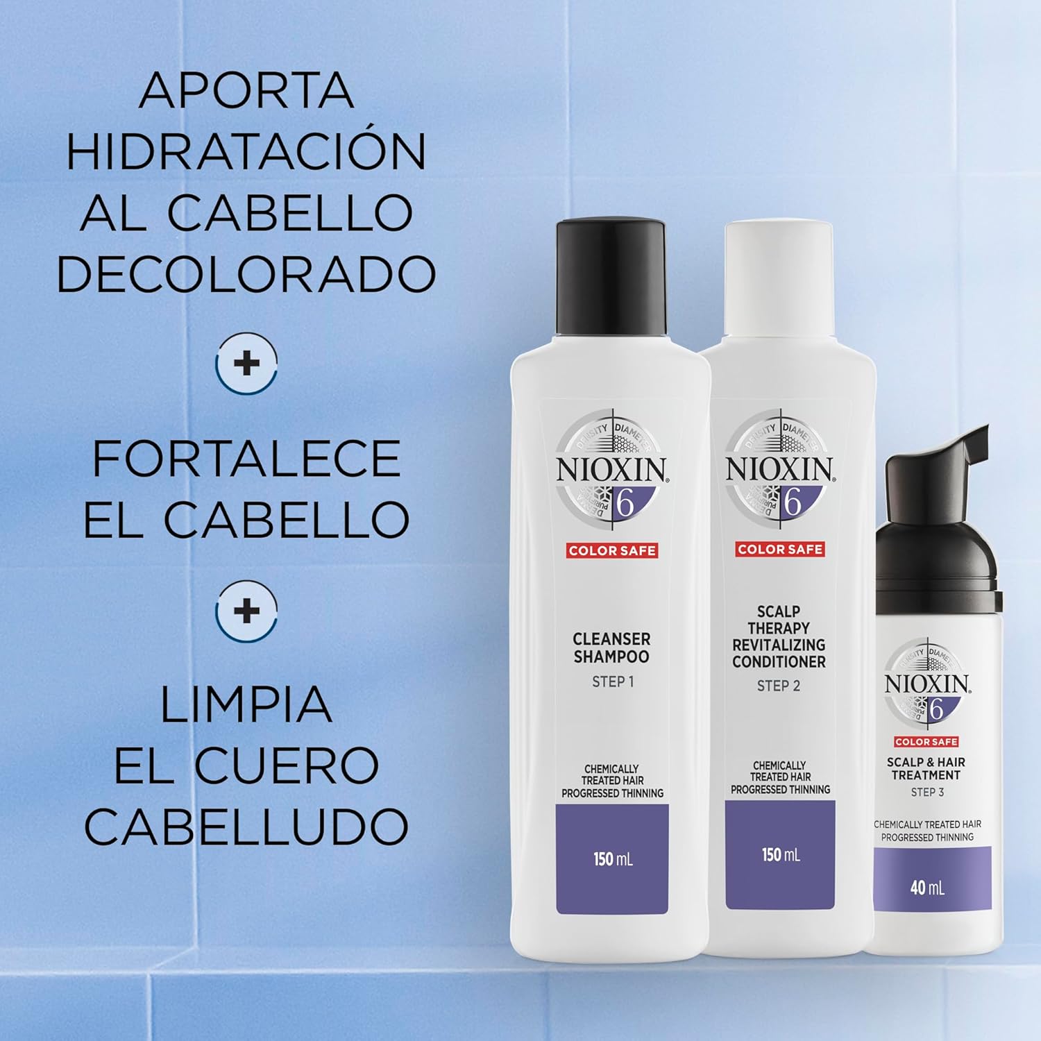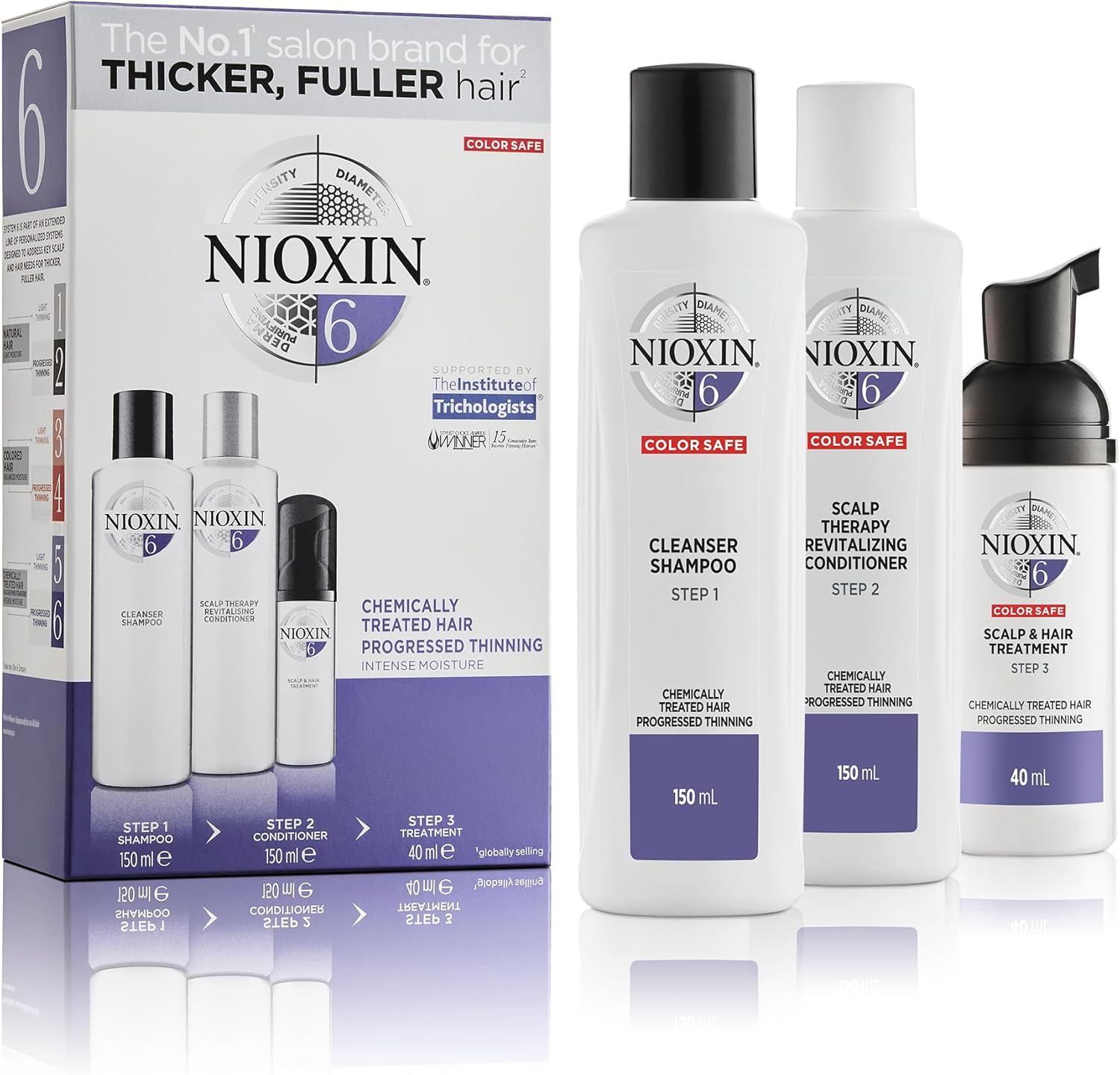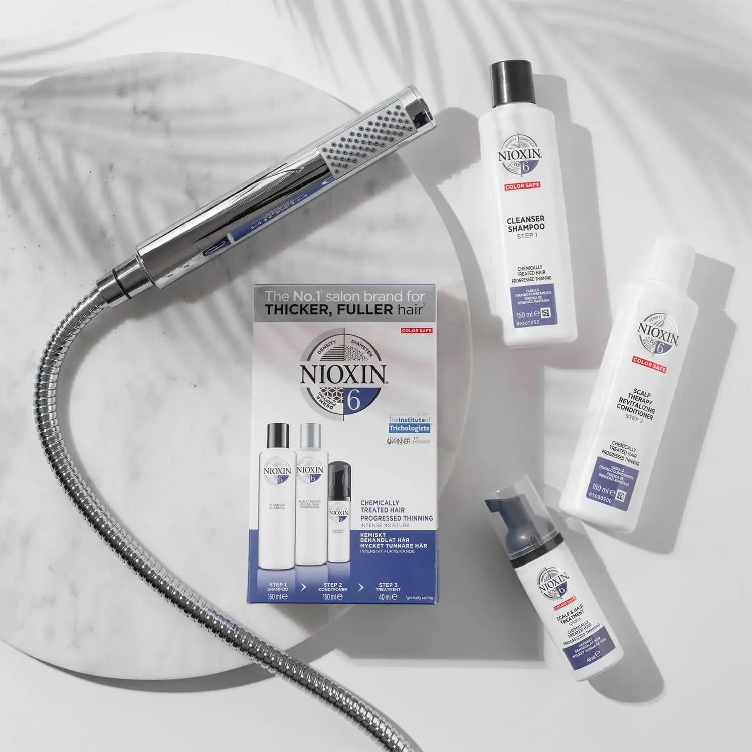 Het Nioxine haarverzorgingssysteem 6 voor chemisch behandeld, zichtbaar dunner wordend haar versterkt de haarstructuur en beschermt het haar tegen haarbreuk. Het vermindert haarverlies door haarbreuk en geeft chemisch behandeld haar een gezond uitziende glans, terwijl het de hoofdhuid verfrist.