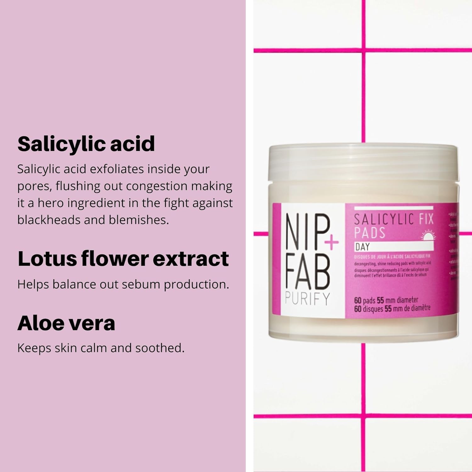 Nip + Fab Salicylic Acid Fix | Peeling Facial Pads Voor Dagopvang Met Salicylzuur | Aloë Vera | Bhazuur | Hydraterende | Anti-Acne Behandeling | Verfijning Van De Poriën | 60 Stks