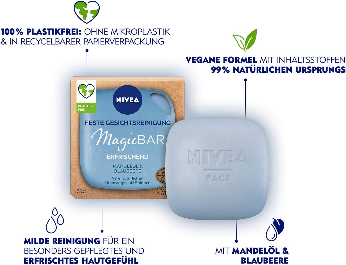NIVEA MagicBar Vaste gezichtsreiniging, verfrissend (75 g), gezichtsreiniger voor een mooi, zacht huidgevoel, gecertificeerde natuurlijke cosmetica met amandelolie en blauwe bessen