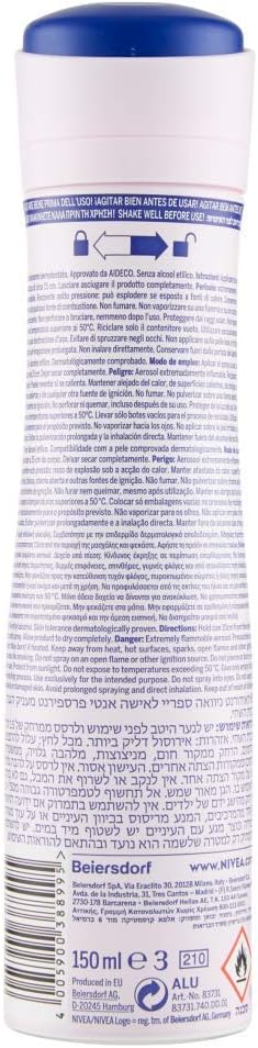 NIVEA Pearl & Beauty deospray bevat geen ethylalcohol of minerale oliën, is huidvriendelijk en geschikt na het ontharen. Breng de milde deodorant uit ca. 15 cm afstand en laat hem volledig drogen. Niet aanbrengen op beschadigde of geïrriteerde huid. Huidvriendelijkheid dermatologisch getest.