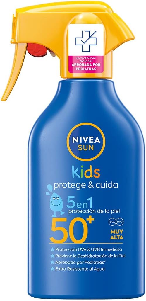 Het plezier onder de zon hoeft niet te worden gecombineerd met een beschermde en gehydrateerde huid. Met de Nivea Sun vochtinbrengende zonnespray met beschermingsfactor 50+ wordt de zachte kinderhuid beschermd tegen schade door zonlicht. De formule met panthenol en vitamine E helpt het risico op zonneallergieën te verminderen en zorgt voor een diep en langdurig vocht.