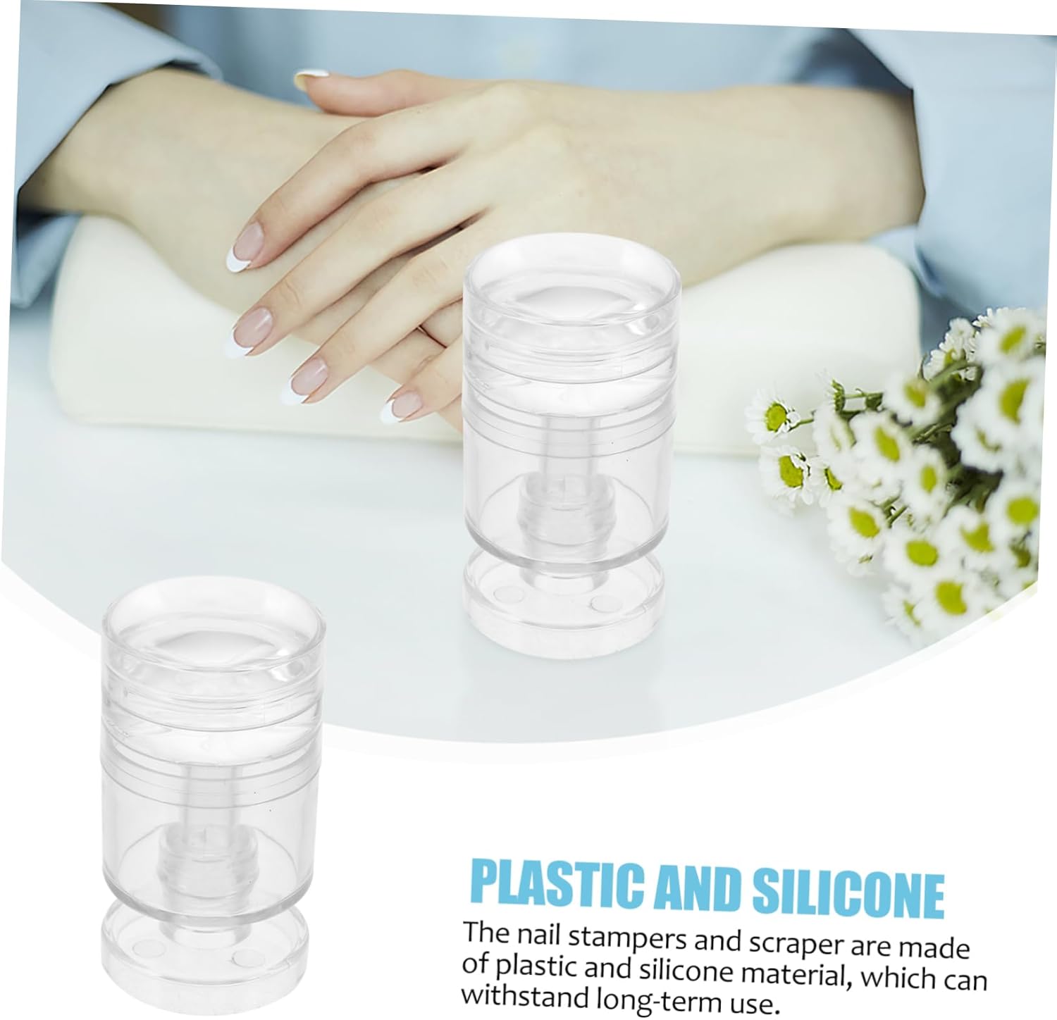 Siliconen nail art-stempel: 💅💅💅💅 nail art-stempels gemaakt met verbeterd siliconenmateriaal, duurzamer, krasbestendig en zachter. onze siliconen nagelstamperkop is afneembaar, wat handig is klanten om te verwijderen reiniging.