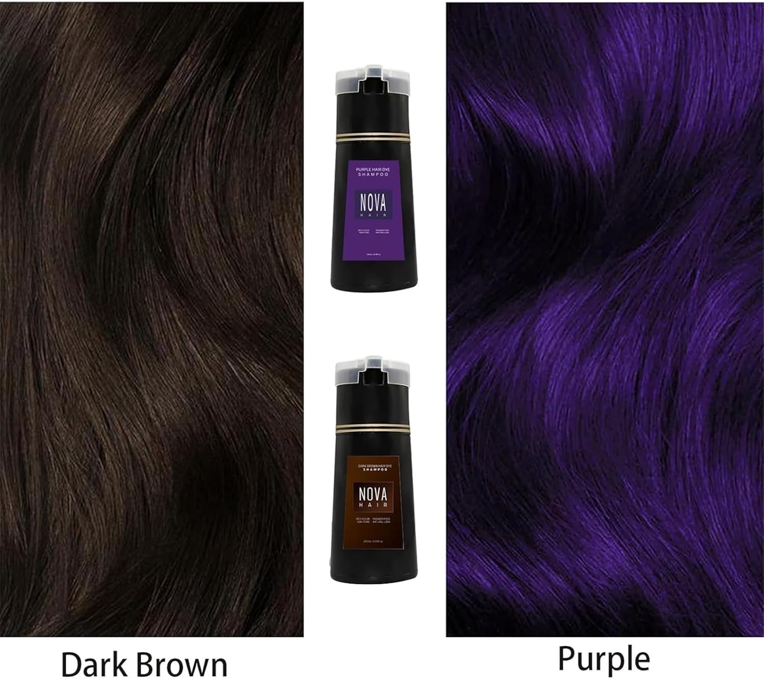 Nova Hair Dye Shampoo, Instant 3 in 1Natural Ingredients Color Long Lasting Shampoo for Women & Men (Purple)