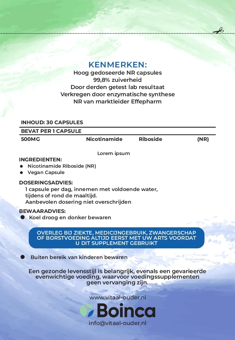 NR – Nicotinamide Riboside – *Vitaal* NAD booster – Uthever – 500mg – maanddosering – vitaal ouder – healthy aging