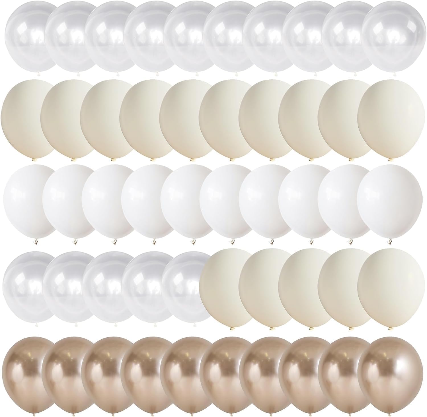 Nude White Gold Balloons, 60 Pieces Metallic Champagne Gold Cream White Transparent Balloons White Sand Blush Beige Transparent Party Balloons for Birthday, Boho, Wedding, Engagement,