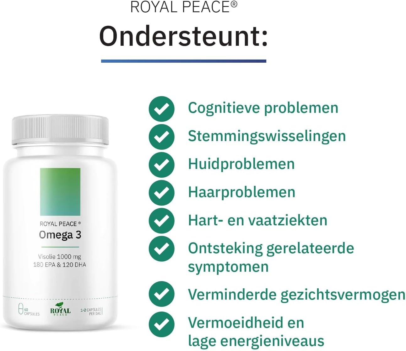 Omega 3 1000mg 180 EPA & 120 DHA – 60 Capsules – Visolie – Man & Vrouw – Op zoek naar een kwalitatief Omega 3 supplement? Onze Omega 3 capsules bevatten 1000 mg pure visolie per capsule, met een uitgebalanceerde verhouding van 180 mg EPA (eicosapentaeenzuur) en 120 mg DHA (docosahexaeenzuur).