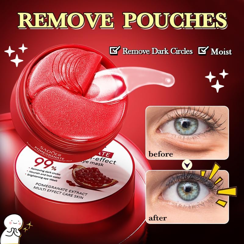 Oogpads, 60 stuks granaatappel oogmasker tegen gezwollen ogen, donkere kringen en rimpels met collageen, verlicht druk en vermindert rimpels, verfrist je huid
