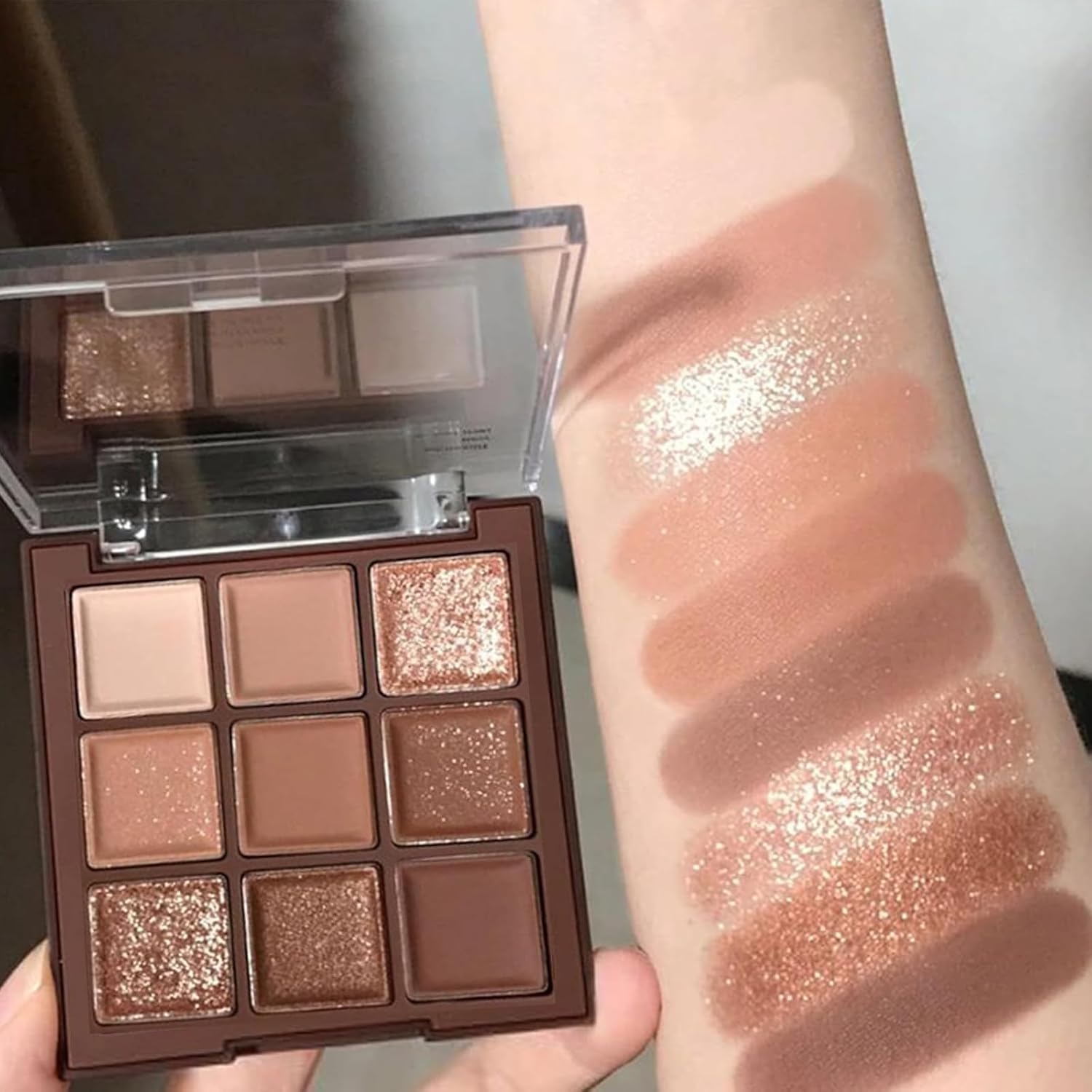 Oogschaduwpalet met hoge pigmentatie, 9 kleuren, veelzijdige afwerkingen, zachte textuur, perfect voor adembenemende oogmake-up looks en nageldesigns