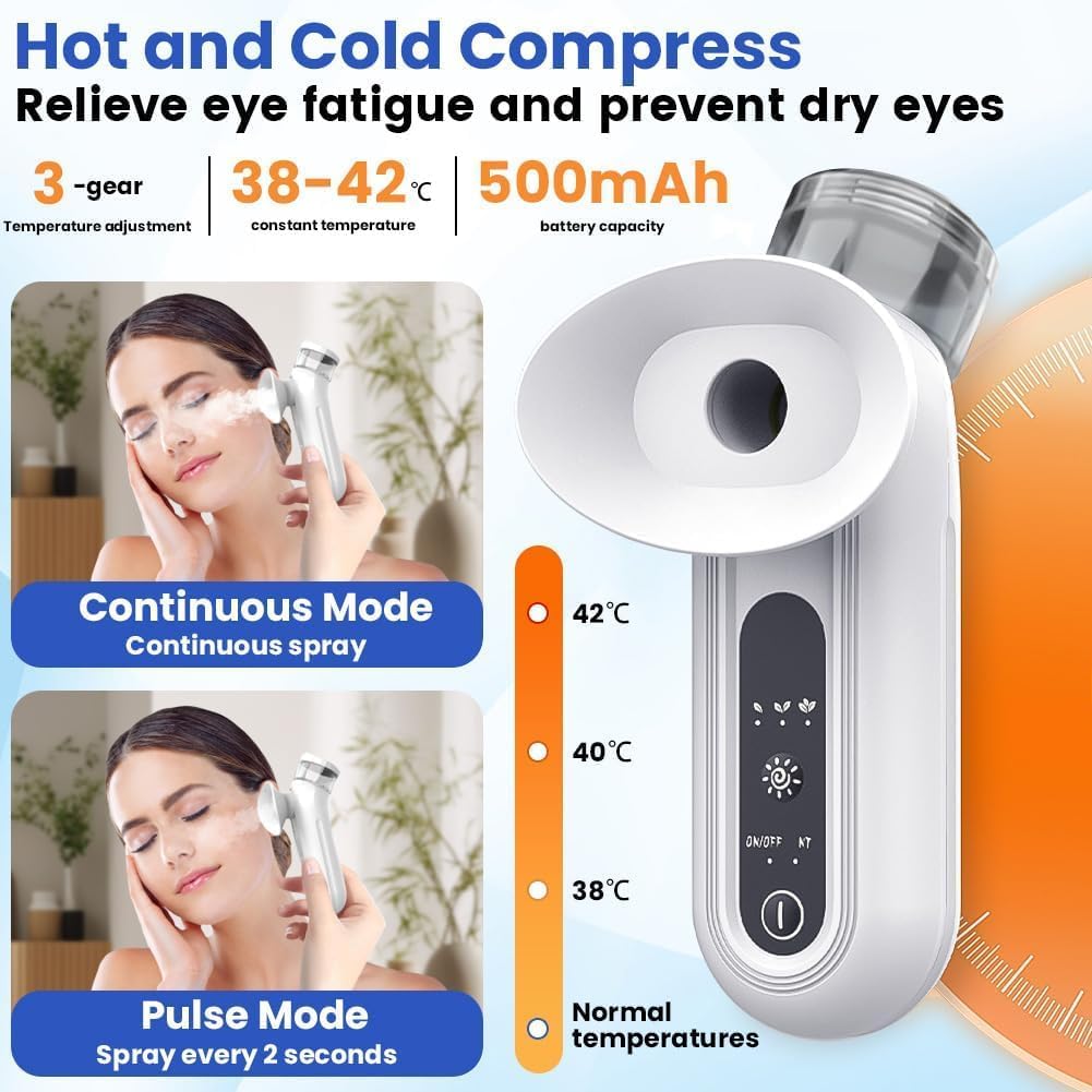 Oogstomer voor droge ogen, verwarmde Nano Eye Mist Sprayer Stoom Wand met Koude & Hot Comprimeren Modes, Ogen Moisturizer Beauty Device, USB Oplaadbare Handheld Face Eye Relief Machine voor Kalmerend