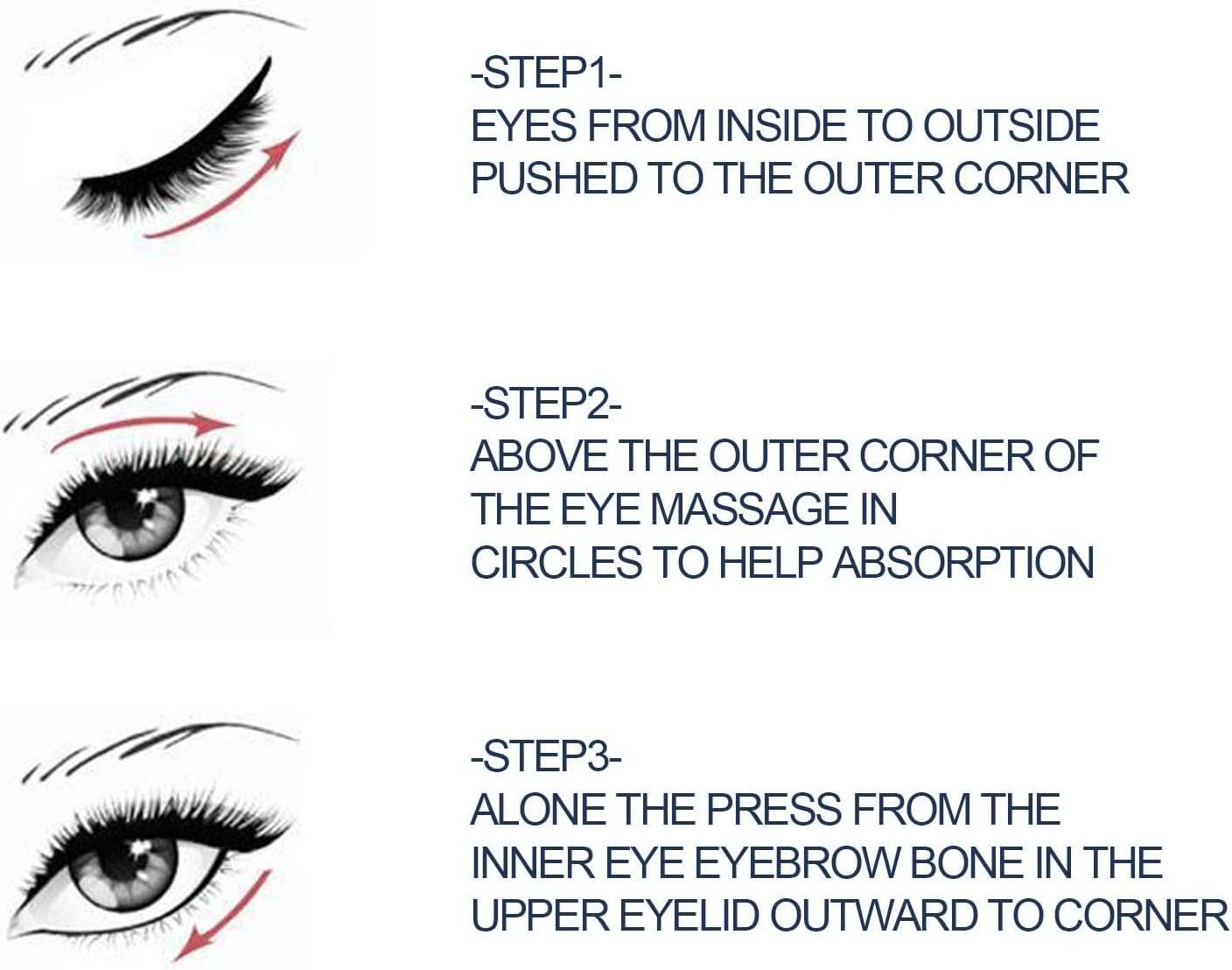 Eenvoudig te gebruiken: Reinig eerst je gezicht en breng gelijkmatig oogcrème rond het oog aan en duw voorzichtig naar links en rechts. Gebruik de wijsvinger om van onder naar het bovenoog te masseren. Laatste massage totdat de oogcrème volledig door de huid wordt opgenomen.
