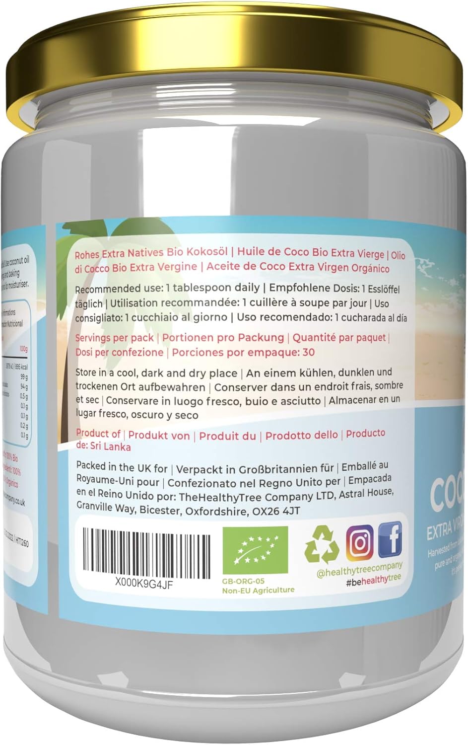 Organic Extra Virgin Coconut Oil by TheHealthyTree Company – for Cooking, Baking, Hair and Skin – Vegan Cold Pressed Raw Organic Coconut Oil (500ml Glass Jar)…