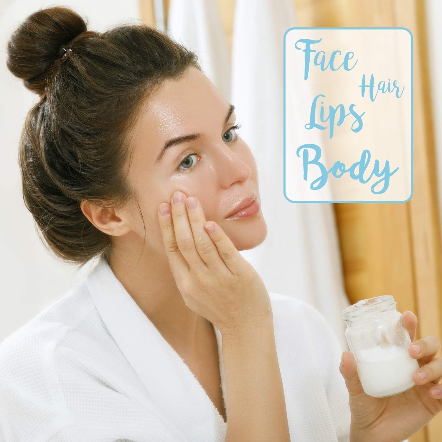 Haar en huid: onze ruwe en extra natuurlijke kokosolie kan als vochtinbrengende crème voor haar, lippen en huid worden gebruikt en laat een zijdeachtig, glad en bijzonder geurend gevoel achter