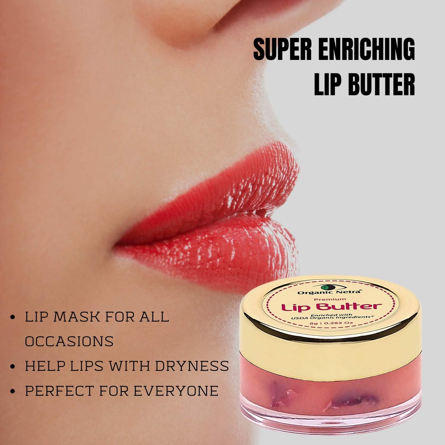 Organic Netra Premium Lip Butter Moistures Lips Mask for All Occasions Perfect for Everyone Enriched with Organic and Natural Ingredients, 8gm