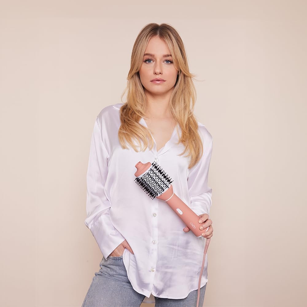 Speciaal ontwikkeld om perfectie van het resultaat te combineren met gebruikscomfort, past de Hollywood Hair Brush van Osée zich aan alle haartypes aan, om het haar in enkele minuten en veilig te drogen, te stylen en glad te maken. De 3-in-1-functie biedt een aanzienlijke tijdbesparing en een nieuwe vereenvoudiging van de haarroutine, voor een professionele föhn thuis. De 2 temperatuur- en snelheidsniveaus en de koude luchtfunctie maken een volledige controle van de styling mogelijk. Ontwikkeld om de luchtverdeling gelijkmatig en snel te optimaliseren, biedt de Hollywood Hair Brush een onmiddellijk gelijkmatig resultaat en beschermt tegelijkertijd de haarvezel dankzij de keramische coating. De ovale vorm is zorgvuldig ontwikkeld om volume vanaf de wortel te creëren en delicate rondingen aan de punten te vormen. Versierd met een geniale mix van gemengde haren en noppen, zorgt hij voor een effectieve ontwarring en biedt een natuurlijke glans voor zijdezacht haar. Geschikt voor professioneel gebruik, het lage gewicht van 400 g en het 360 graden draaibare snoer van 2,40 m geven hem een ongeëvenaard bedieningscomfort en bewegingsvrijheid. De soft-touch coating perfectioneert het gebruikscomfort met een zijdezacht gevoel. De warmte-isolerende punt beschermt tegen brandwonden en de geïntegreerde ionentechnologie vermindert het statische effect en kroezen en beschermt de haarvezel tegen uitdroging.
