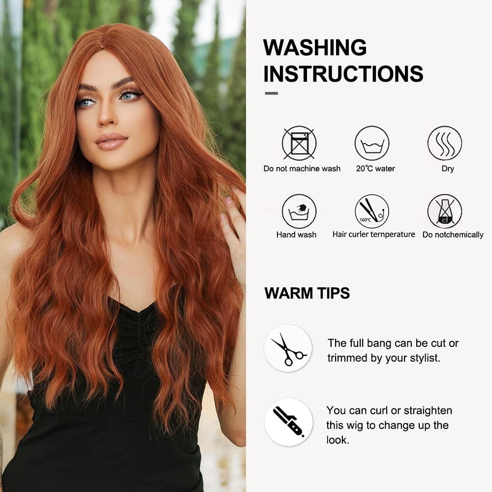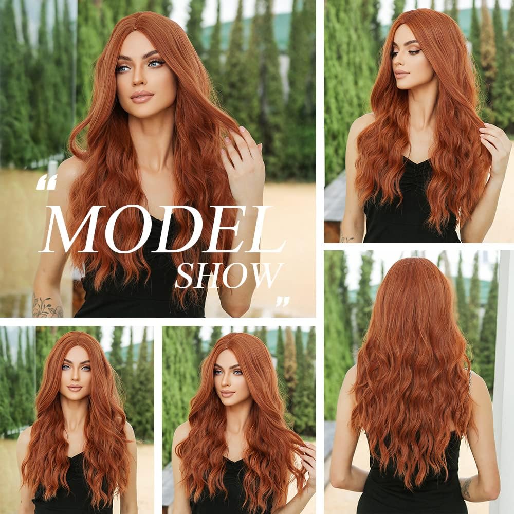OUFEI Lange Golvende Ginger Pruiken voor Vrouwen Natuurlijk Synthetisch Haar Hittebestendige Pruiken voor Dagelijks Party Cosplay Wear