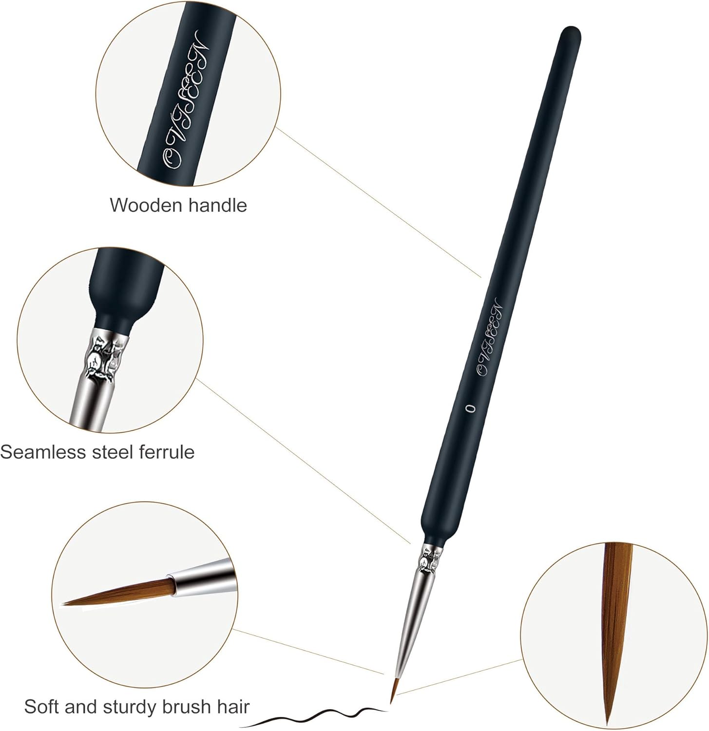 OVISEEN 9-delig Detail Kwastenset Fijne Miniatuur Kunstenaar Schilderij Borstels Met 0, 00, 000 Tekenborstels voor Schilderijen Kunst Acryl Aquarel Olie Nail Art
