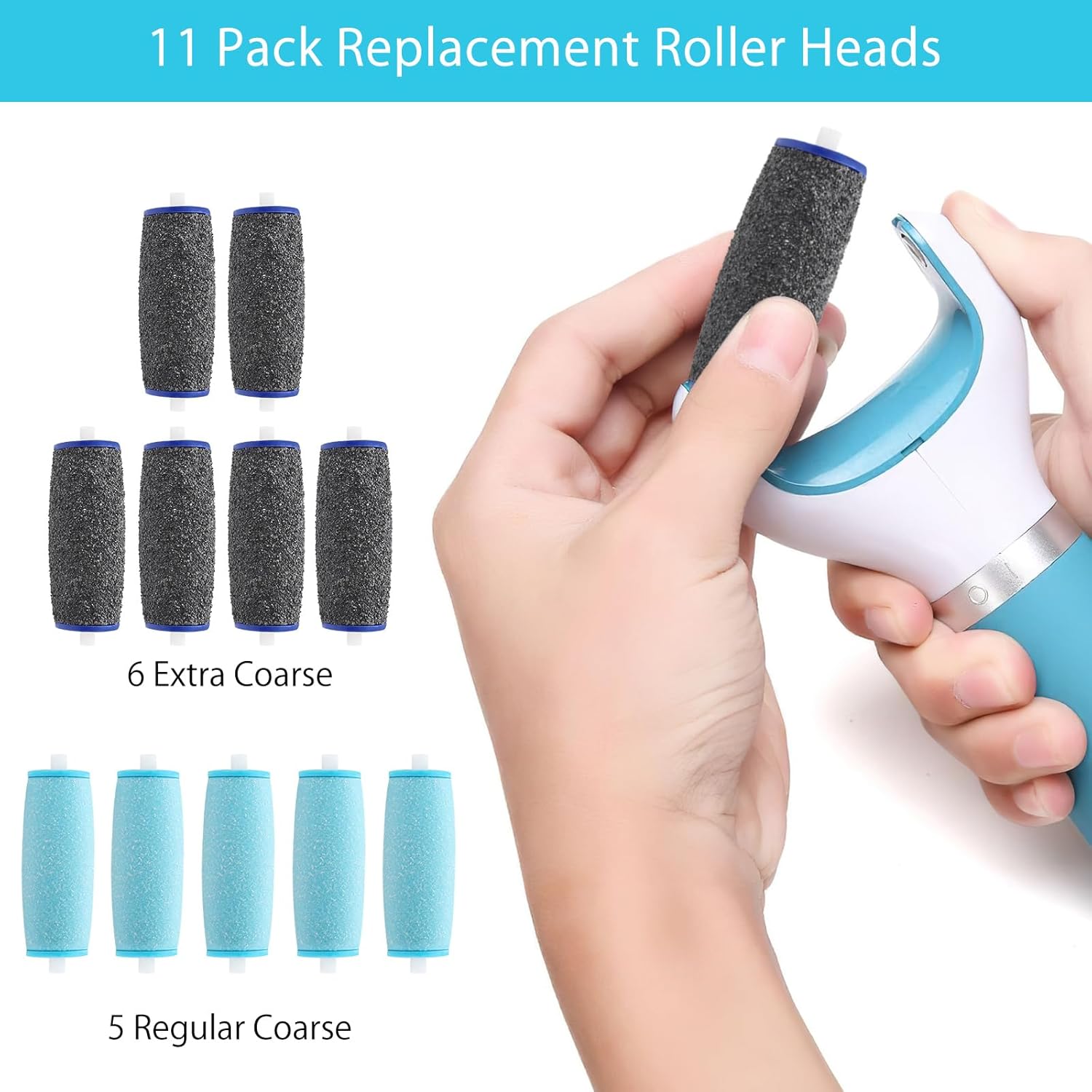 Pack of 11 Callus Remover Replacement Rolls Compatible with Scholl Velvet Smooth Replacement Heads for Hard Skin Removal, Spare Rolls Callus Remover, 6 Extra Coarse and 5 Normal Coarse