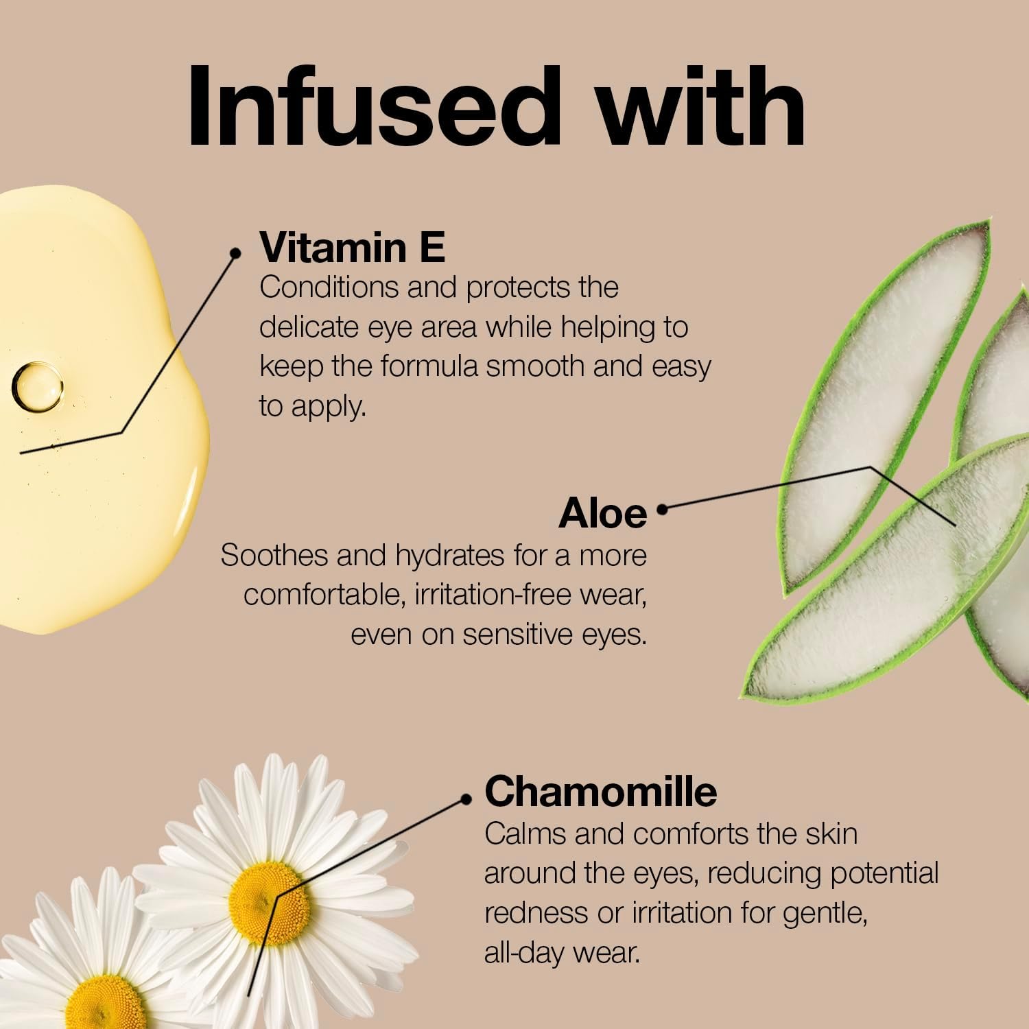 BOTANICAL AND VITAMIN CARE: Infused with nourishing skin care ingredients such as aloe, camellia, safflower, ginkgo biloba, ginseng and chamomile that help hydrate the skin.