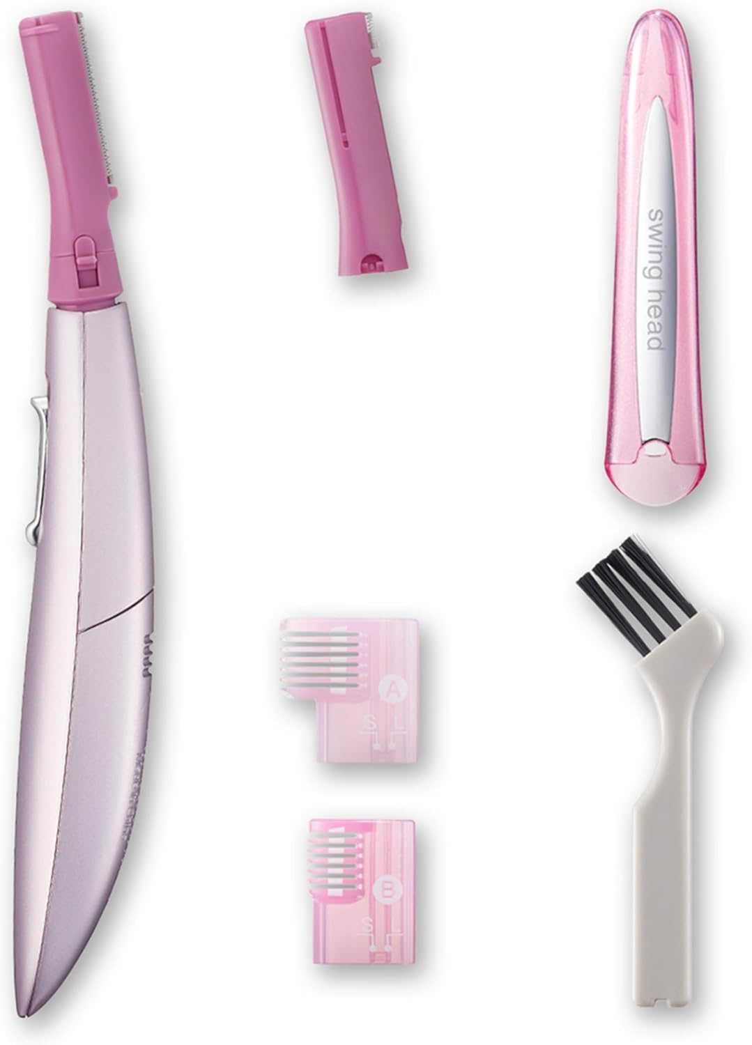 Panasonic ES2113PC Facial Hair Trimmer for Women, with Pivoting Head and Eyebrow Trimmer Attachments, Battery-Operated