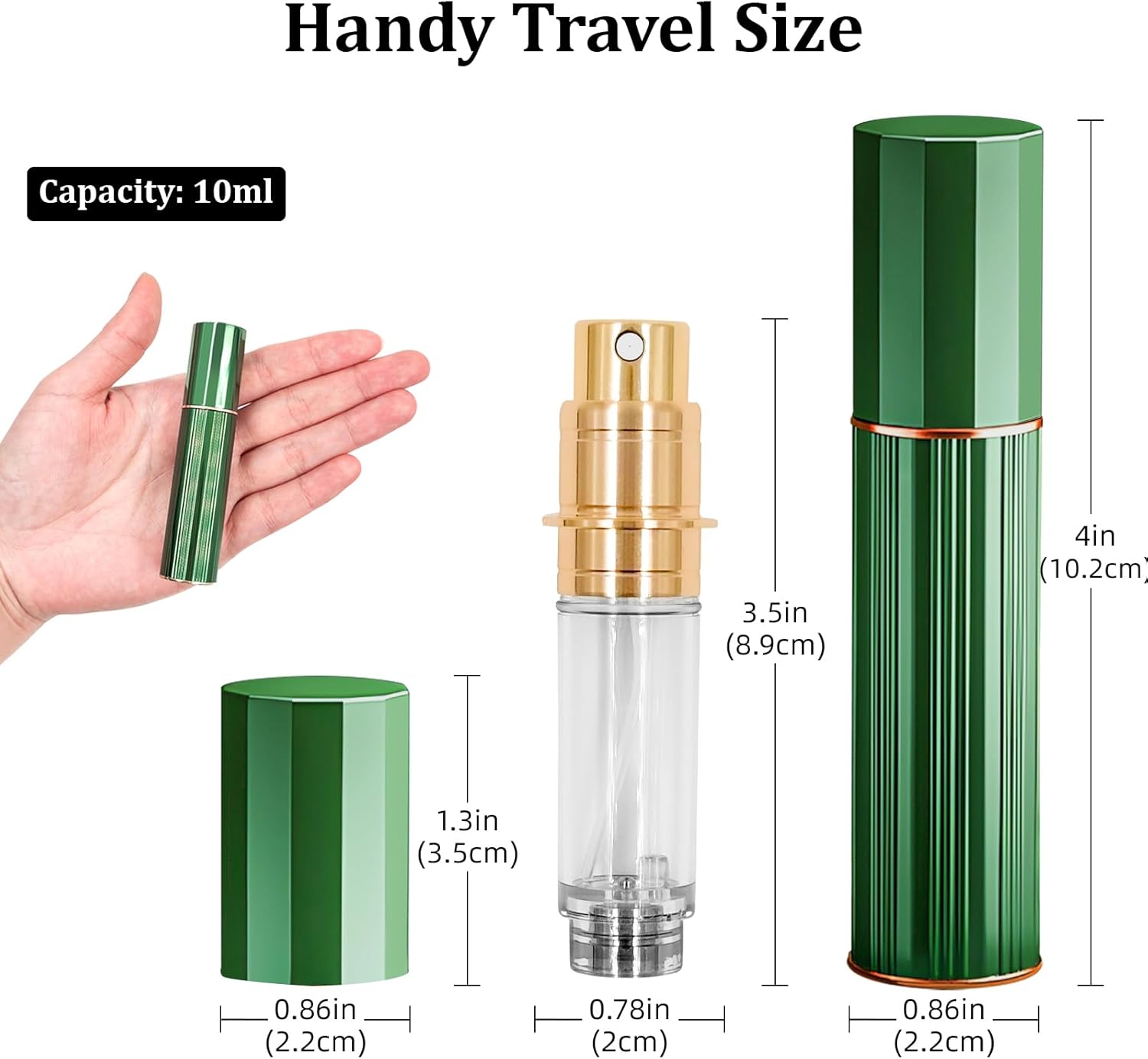 Compact en draagbaar: met een capaciteit van 10 ml biedt elke verstuiver meer dan 130 sprays, perfect voor een reis van 15-20 dagen. Het compacte formaat zorgt voor eenvoudige opslag in uw tas, tas of zak, waardoor het een ideale metgezel is voor reizen, avondjes uit of frisheid onderweg.