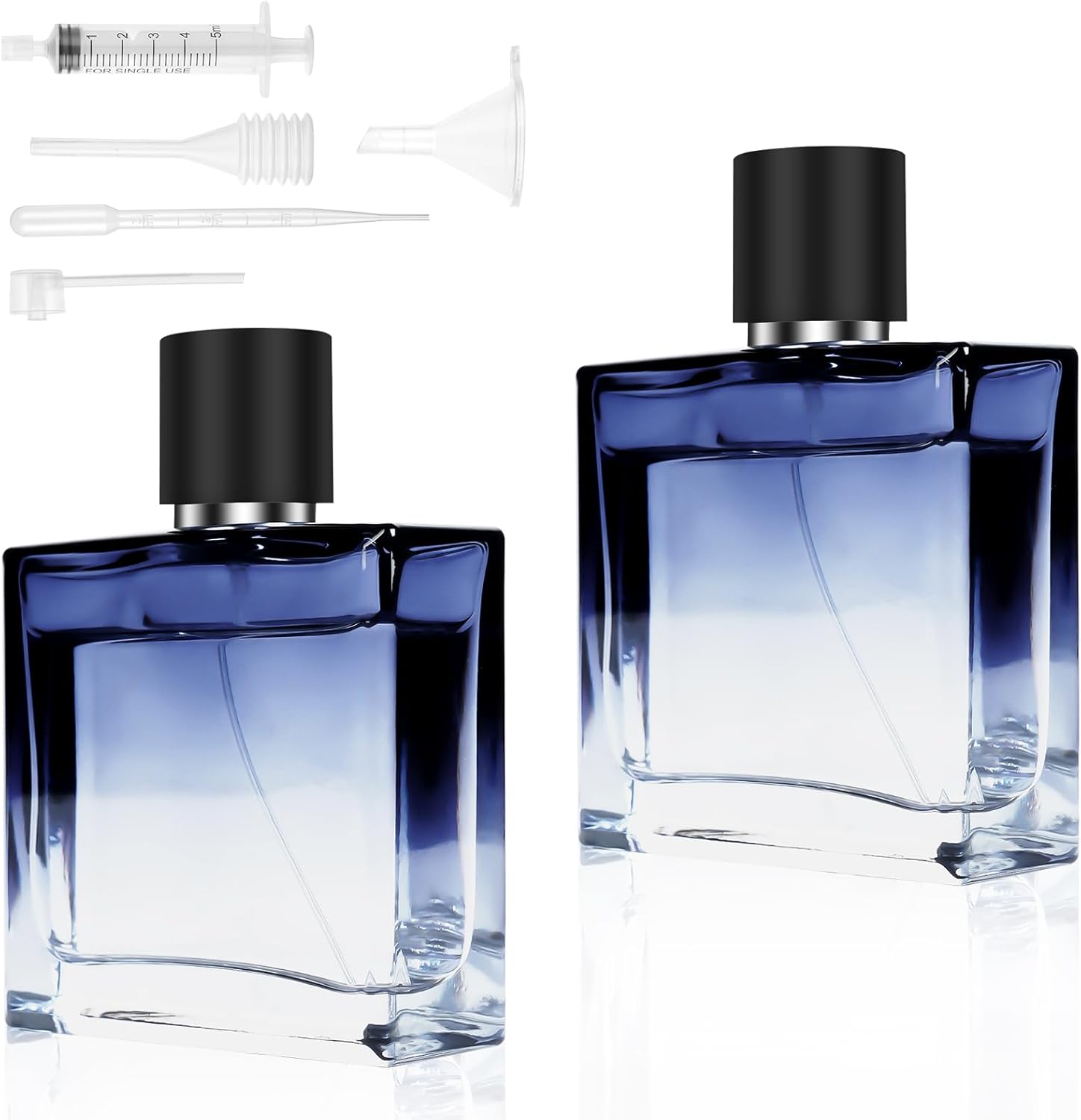 Parfumverstuiver, 2 stuks, 100 ml, mini-parfumverstuiver, blauw, draagbare parfumverstuiver, navulbaar, verstuiver, parfumspuitfles, parfumspray voor op reis, voor mannen en vrouwen
