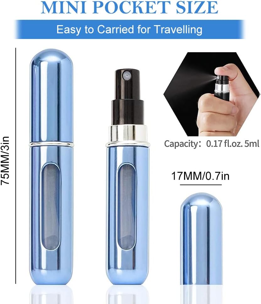 De set bevat: 3 verschillende kleuren draagbare, navulbare parfumflessen voor onderweg, elk 5 ml, geschikt voor de meeste heren- en damesgeuren.