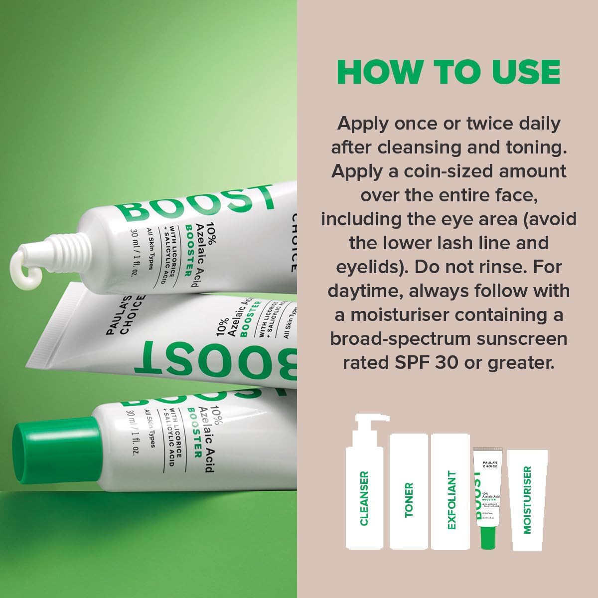 MET AZELAÏNEZUUR : Ingrediënt met drievoudige werking: werkt antioxiderend, kalmerend en is effectief tegen huidverkleuringen.
