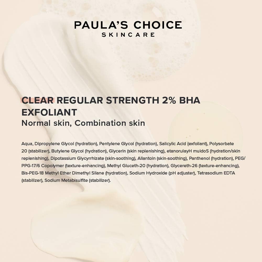 Paula’s Choice CLEAR Regular Strength 2% BHA Exfoliant – Verwijdert Dode Huidcellen met Salicylzuur – Vermindert Roodheid & Puistjes – met Hyaluronzuur – Normale tot Gecombineerde Huid – 118 ml