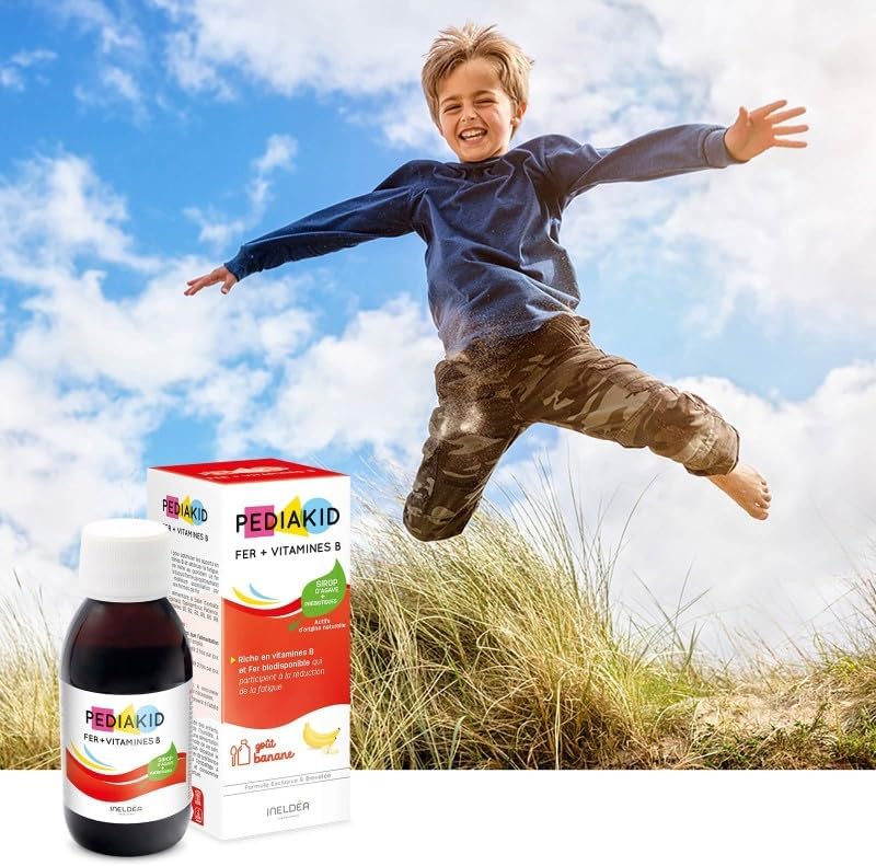 OM VERMOEIDHEID TE VERMINDEREN: IJzer neemt deel aan het transport van zuurstof en het verminderen van vermoeidheid. De siroop Pediakid ijzer + B-vitaminen maakt een optimalisatie van de ijzerinname mogelijk dankzij zijn zeer assimileerbare formule.