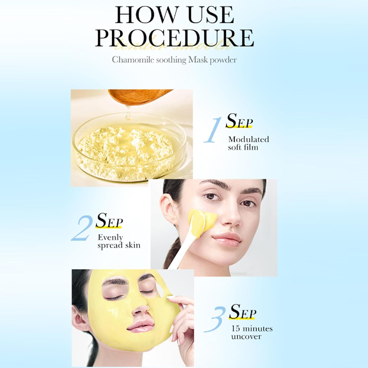 Peel-Off gezichtsmasker: hydrogel-gezichtsmaskers in jelly vochtinbrengende crèmes, jelly gezichtsmaskerpoeder, hydraterend en voedend voor een stralende en soepele huid (kamille)
