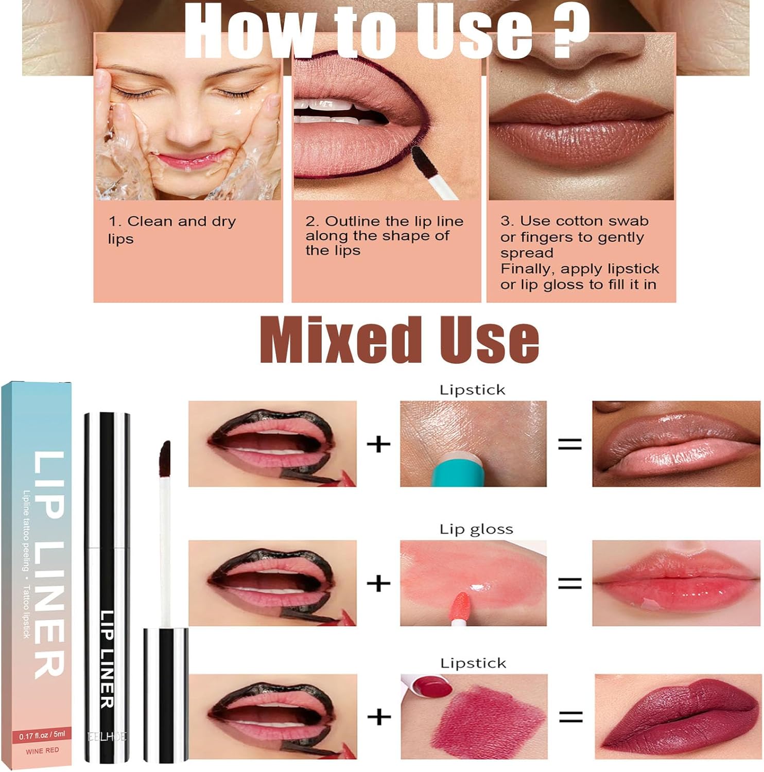 Peel Off Lip Liner Stain, 3 kleuren Lip Stain Peel Off Mat