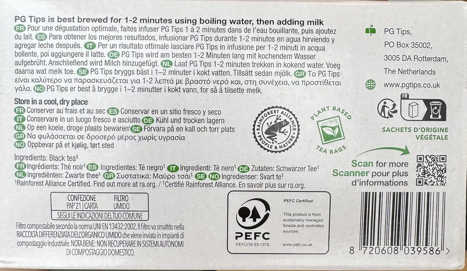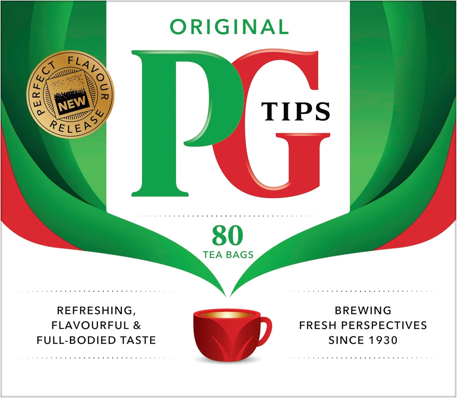 PG Tips Theezakjes, origineel, zwarte thee, met de fijnste en meest verse theebladeren, voor dagelijks genot, 12 stuks x 80 zakjes, 960 zwarte theezakjes