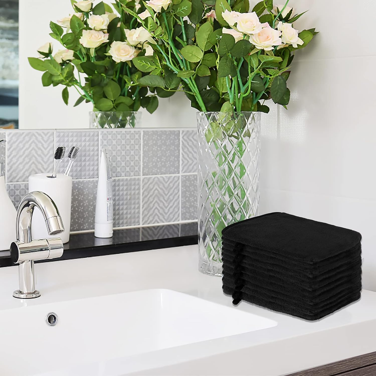 PHOGARY 10 stuks zwarte microvezel washandjes, flanellen zachte gezichtswant, bad spa-doek, herbruikbare make-up remover wanthandschoenen, Europese stijl washandje, 6 x 8 inch