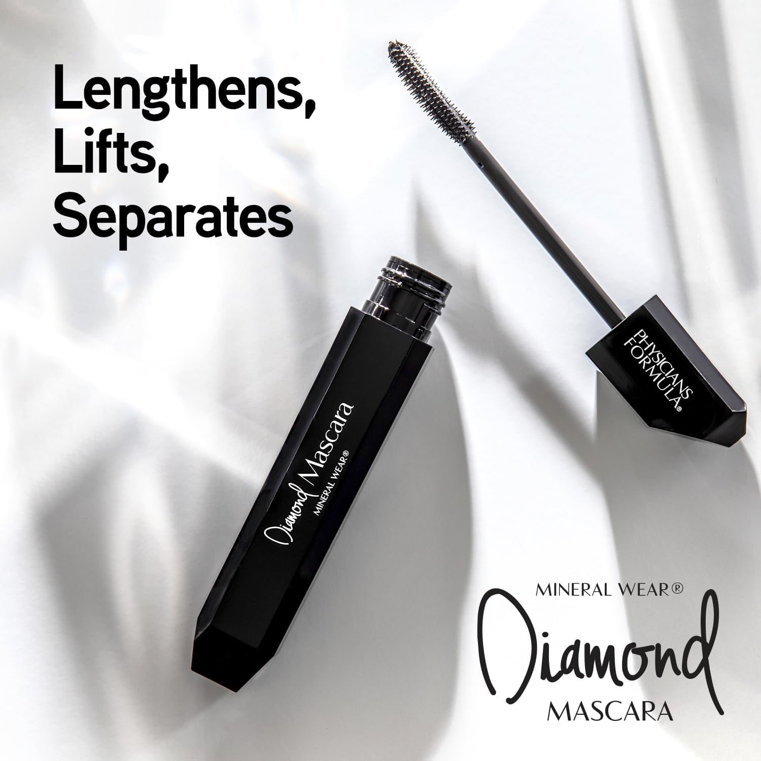 Physicians Formula, Mineral Wear Diamond Mascara, Black Mascara for Strengthening Effect, with Shiny Diamond Dust, Eyelash Strengthening Peptides, Soothing Mineral Water and Nourishing Vitamin E