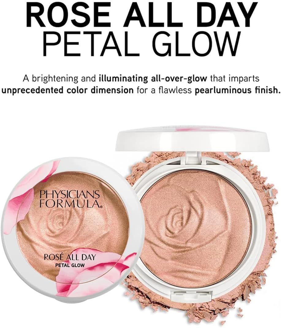 Physicians Formula – Rosé All Day Petal Glow – Highlighter voor Glanzende Finish en Langdurig Effect – Voor Alle Huidtinten – Met Kakadu Pruim, Rozenwater, Goji en Verstevigende Elementen – Petal Pink
