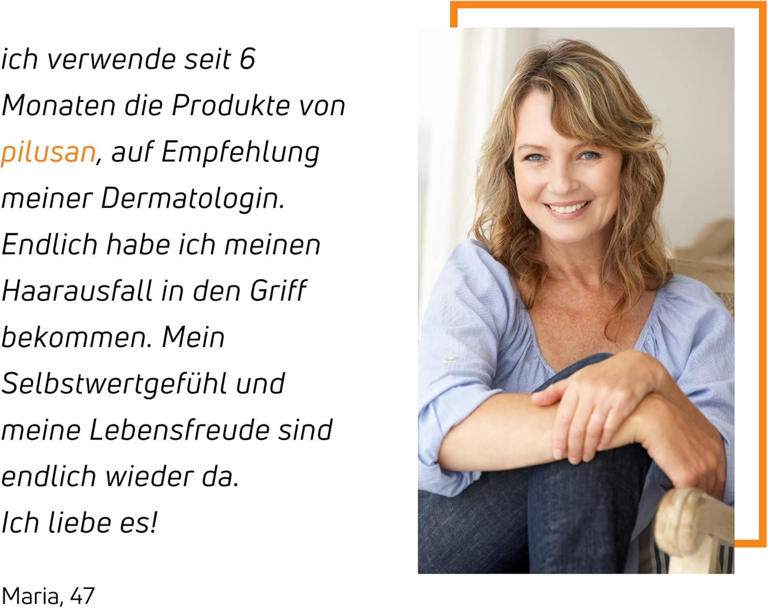 “Sindsdien ik het haarserum gebruikt, lijkt Pilusan Forte nog beter nieuwe haargroei te stimuleren. Mijn haaruitval is van rampaal naar een normale hoeveelheid teruggegaan
