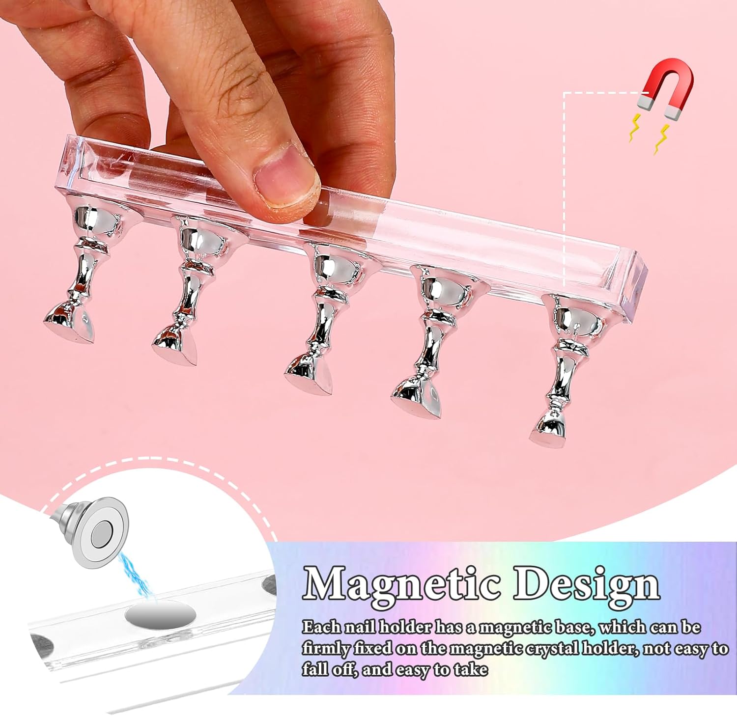Piriuuo Nail Stand, Acrylic Nail Stand, Nail Practice Stand, Magnetic Nail Tips, Holder, Nail Stand, Nail Tip, Manicure Tools, Nail Tips, Nail Tip Holder, Silver