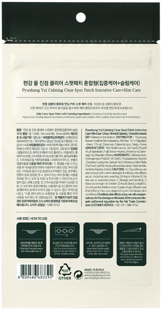 [PKY] Pyunkang Yul Kalmerende Clear Spot Patch (Intensief + Slim Care) 124 Count – Hydrocolloïde Acne Spot, Onzichtbare Puistjes, Onzuiverheden & Zit Cover, Koreaanse Huidverzorging Acne Stickers