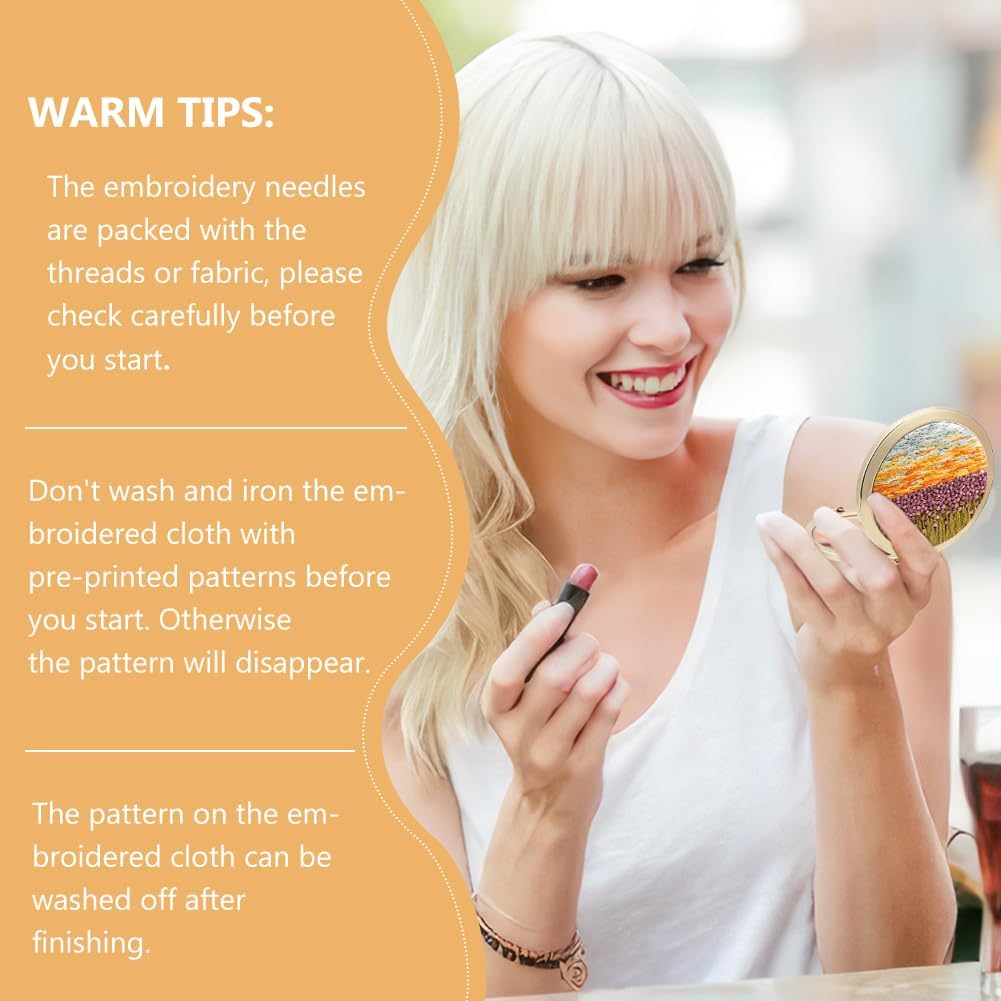 Geniet van handgemaakte doe-het-zelf: deze doe-het-zelf spiegelborduurset is geschikt voor doe-het-zelvers en beginners om nieuwe hobby’s te verkennen, de handgemaakte spiegel zal betekenisvoller zijn; Borduurwerk is ook een goede manier om te ontspannen