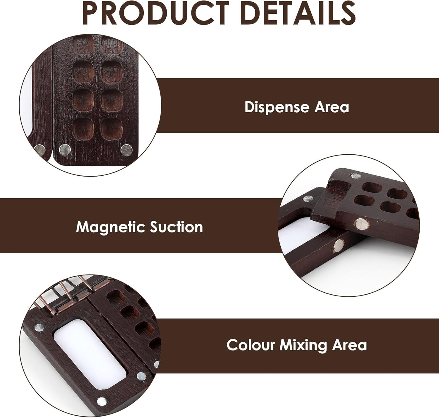 Houten paletdoos met mengbak: het heeft 8 roosters aan één kant en je kunt verf direct in de gaten persen. Het wordt geleverd met een kleurmengbak aan de andere kant. Gevuld met de verf die je nodig hebt of favoriet en reis ermee. Het kan in je zak of rugzak worden geplaatst. De borstels zijn gemaakt van hoogwaardige materialen met nauwkeurige borstelcontrole om ervoor te zorgen dat u geniet van uw tekenproces