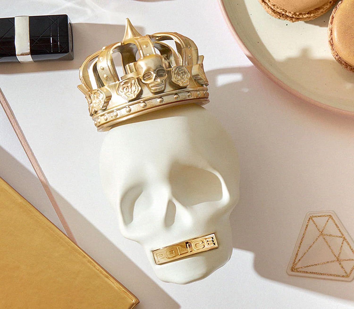 Buona profumazione. Il teschio bianco con la corona oro è proprio bello. Prezzo conveniente