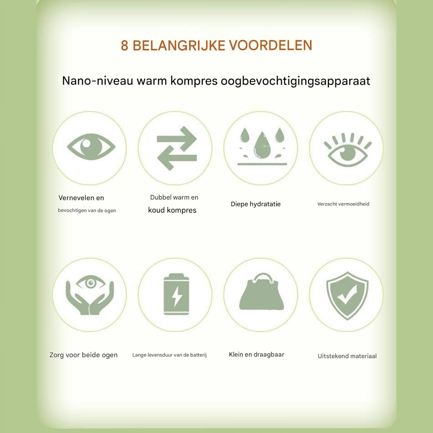 De innovatieve technologie verandert vloeibare oog voedingsoplossing in geatomiseerde mist. Beschikt over 3 temperatuurmodi (45-65 ℃), ergonomisch ontwerp voor de oogkoker en ingebouwde 600 mAh-batterij. Bijduurbaar en gebruiksvriendelijk ontwerp.