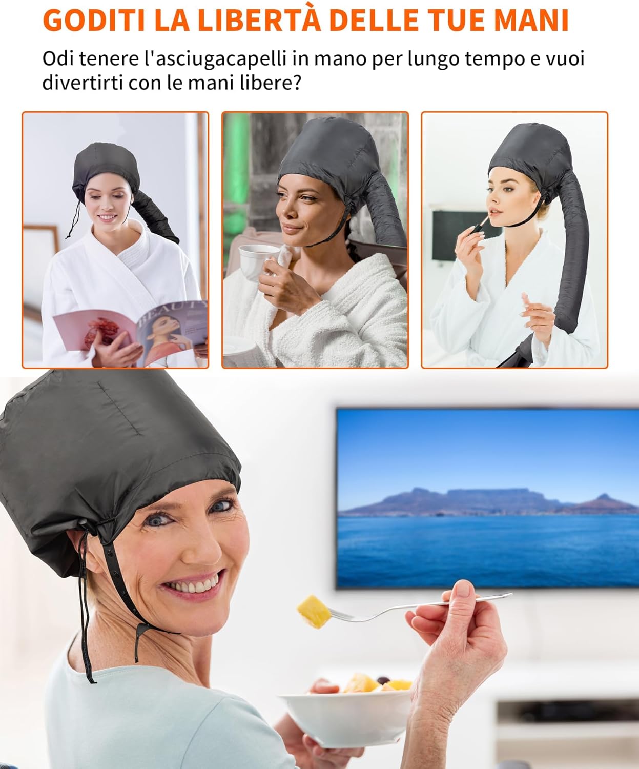 Gebruik onze thermische haarkap om je handen vrij te maken en je make-up te maken, terwijl je wacht tot je haar droogt, tv kijkt, een boek leest datAfternoon thee, spelen en meer.