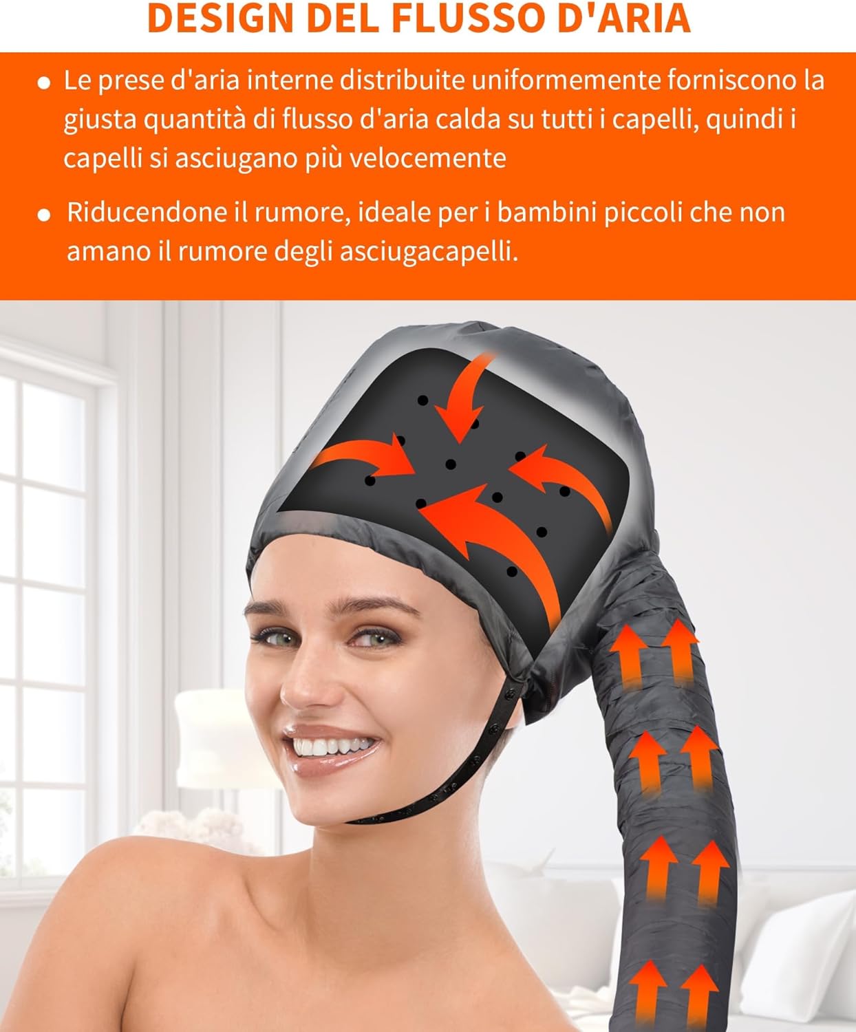 Portable hair dryer helmet, thermal hair cap, hood for drying, combing and curling hair
