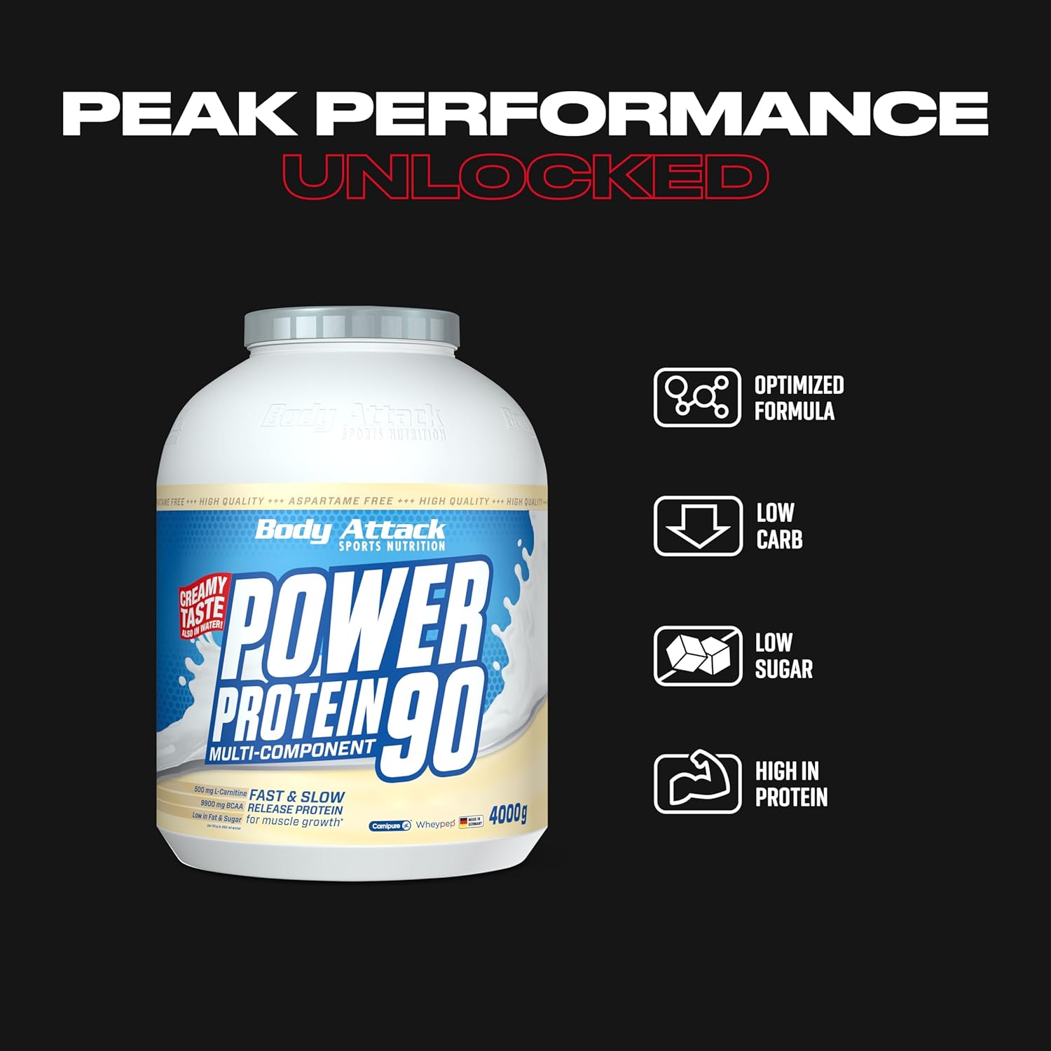 Body Attack power proteïne 90 Of het nu voor fitness-, game-, duur- of krachtsporters is: de Power Protein 90 van Body Attack is de optimale aanvulling wanneer door de belasting van de spieren de eiwitstofwisseling wordt gestimuleerd. Want dan levert Power Protein 90 waardevolle eiwitten, die kunnen bijdragen aan een toename en het behoud van de spieren.