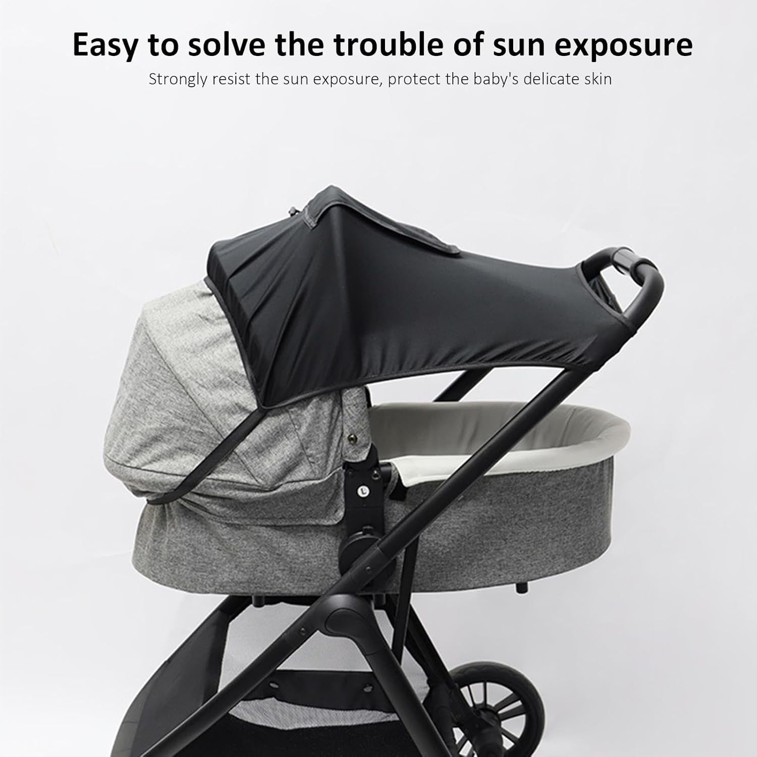 Pram Sun Shade Cover, Rain Proof Blocks UV Baby Sunshade, Waterproof Breathable, Sunscreen To Aid Sleep, Easy To Install, For Prams, Travel Strollers And Pushchairs, Black