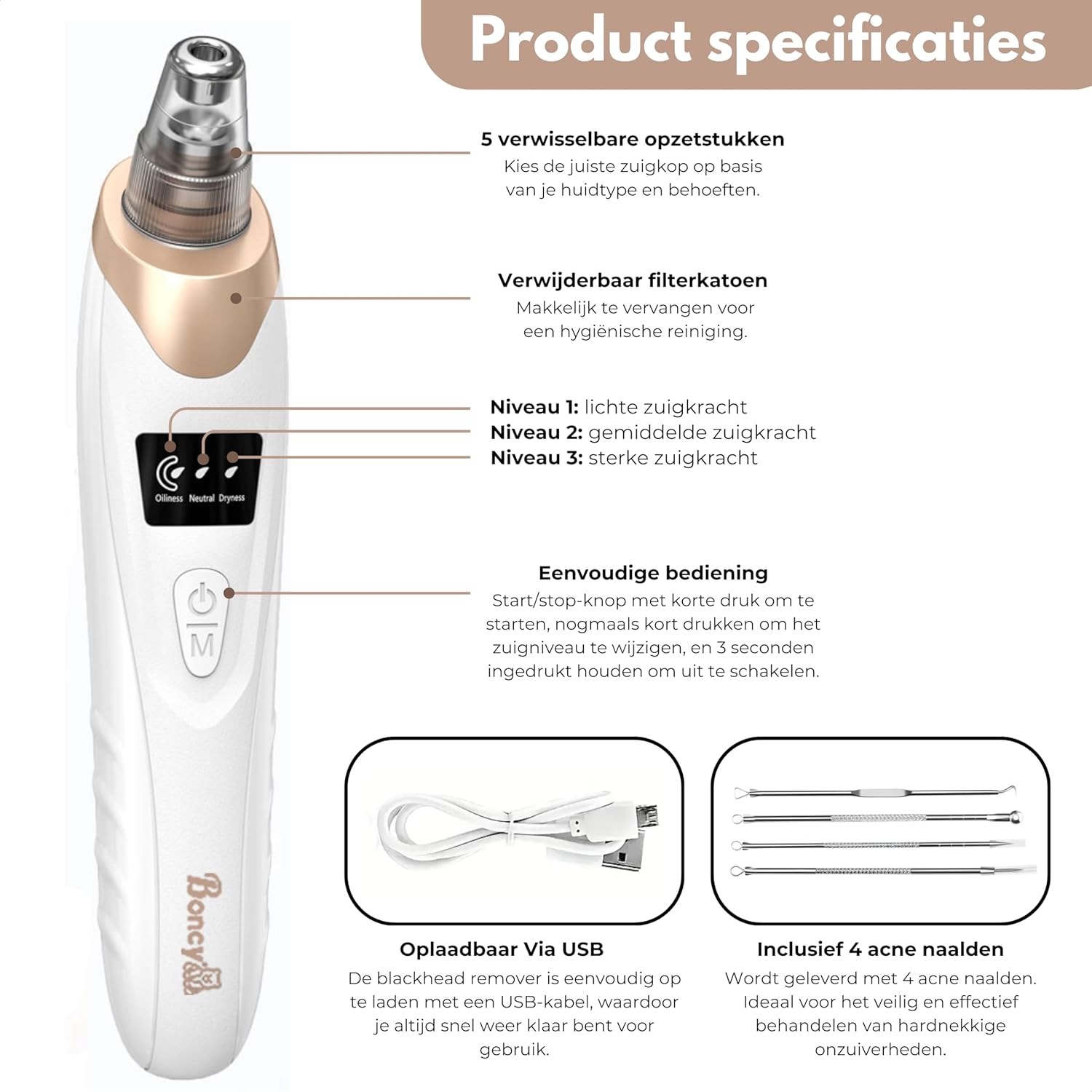 Premium BlackHead Remover – Poriënreiniger – Mee eters verwijderen – Vacuum Verwijderaar Inclusief Comedonenlepel Set