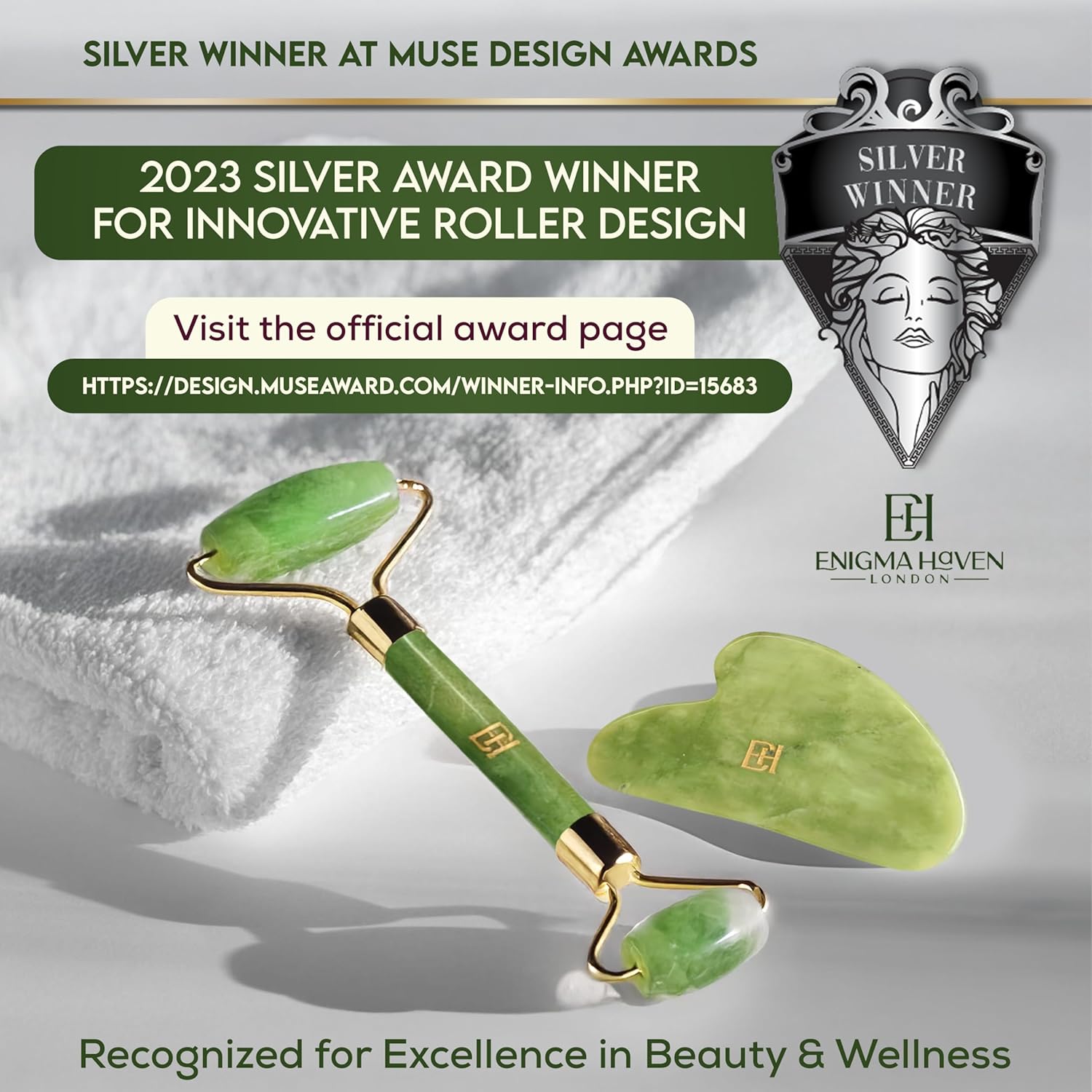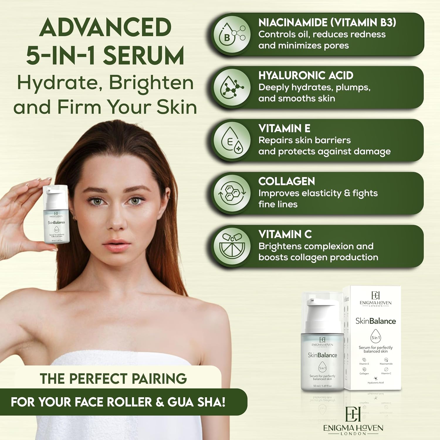 Enigma Haven London Jade of Rozenkwarts Roller & Gua Sha Set met Skin Balance Serum Verbeter uw huidverzorgingsroutine met een mix van traditie en moderne verzorging. Kies uit onze Jade of Rose Quartz Roller en Gua Sha tools, gecombineerd met een hydraterend Skin Balance Serum, ontworpen voor een verfrissend ritueel thuis. Waarom onze set opvalt premium materialen: glad, gepolijst jade of rozenkwarts gereedschap gemaakt voor zachte gezichtsmassage. Skin Balance Serum: Geformuleerd met hyaluronzuur, niacinamide en vitamine C om hydratatie en een stralende teint te ondersteunen. Ontwerp met twee doelen: Gebruik de roller voor ochtendrevitalisatie en de Gua Sha-tool om een gebeeldhouwd uiterlijk te bevorderen. Geschikt voor luxe cadeau: elegant verpakt voor huidverzorgingsliefhebbers, ideaal voor verjaardagen, Moederdag of zelfzorgmomenten. Belangrijkste voordelen Koeling jade of rozenkwarts stenen ontworpen voor een rustgevende massage ervaring. Lichtgewicht serum helpt de vochtretentie en huidtextuur te verbeteren. Ergonomische gereedschappen voor eenvoudig gebruik; koel voor het aanbrengen voor extra verfrissing. Wreedheidvrij en verantwoord vervaardigd, vrij van parabenen of agressieve toevoegingen. Ontdek een mindful huidverzorgingsritueel dat tijdloze technieken combineert met moderne benodigdheden.